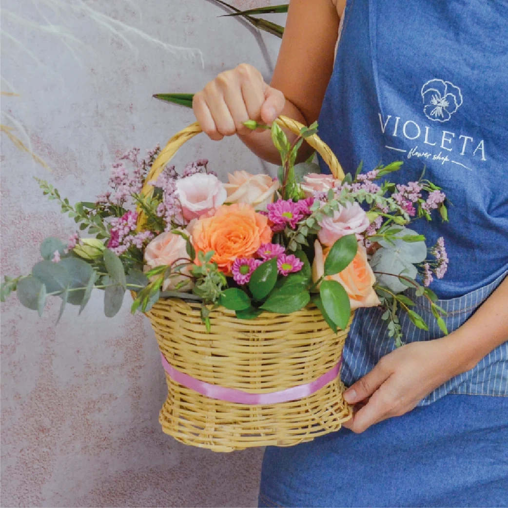 Que los diseñadores se inspiren con flores del día! Arreglo de variedad flores frescas en una canasta. Los colores pueden variar según la disponibilidad de flores frescas del día. Contáctanos para cualquier especificación.