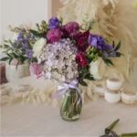Arreglo de variedad de flores frescas, en un jarrón de vidrio. Un arreglo alegre y natural con las flores del día que tenemos en stock, o pídelo en los tonos que quieras!