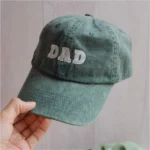 Gorra verde desgastada con la palabra DAD