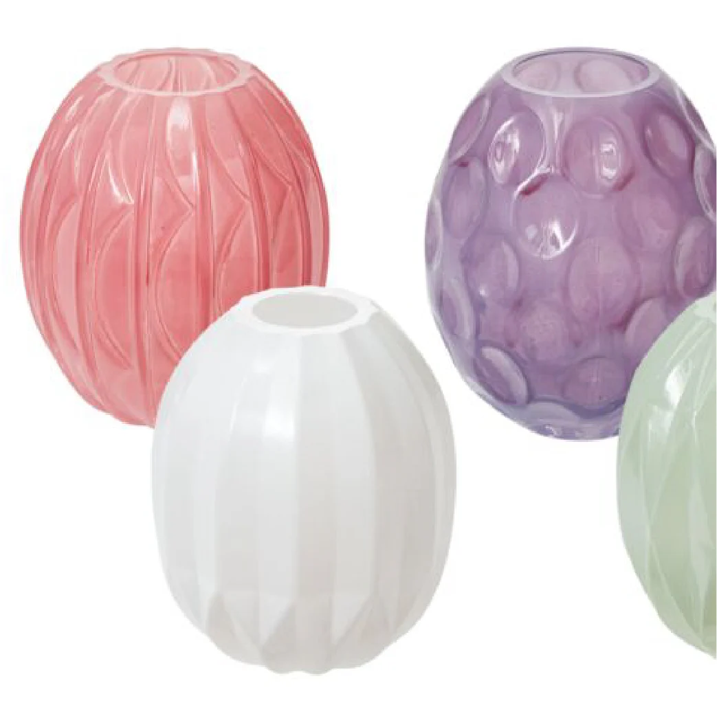 El Candy Vase, que recuerda a los dulces de Pascua, es un florero de vidrio grabado con forma de huevo, perfecto para resaltar las flores de primavera.