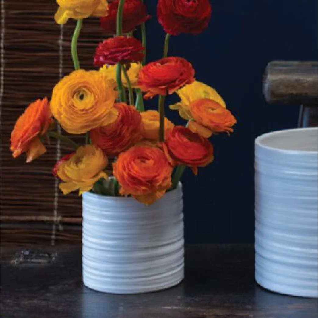Maceta de cerámica estriada sencilla con esmalte blanco mate, moderna y perfecta para decoración del hogar o flores.